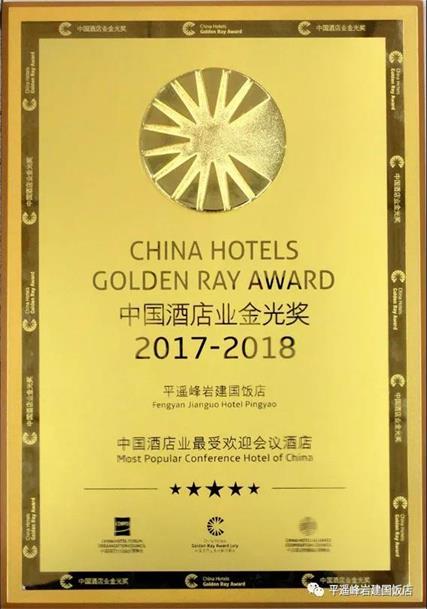 05/10 - 喜訊丨平遙峰巖建國(guó)飯店 榮獲“中國(guó)酒店業(yè)金光獎(jiǎng)”4月21日晚9時(shí),2017-2018中國(guó)酒店業(yè)金光獎(jiǎng)?lì)C獎(jiǎng)典禮在昆明隆重舉行,數(shù)百位來自全國(guó)各地的酒店業(yè)代表共襄盛舉。當(dāng)晚近50萬(wàn)網(wǎng)民通過視頻直播圍觀了頒獎(jiǎng)盛典。 經(jīng)過中國(guó)