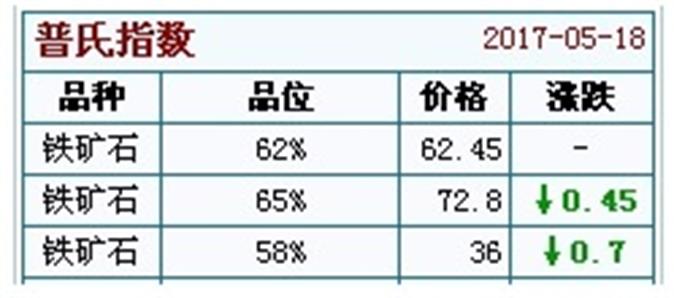 2017年5月18日普氏鐵礦石價(jià)格指數(shù)