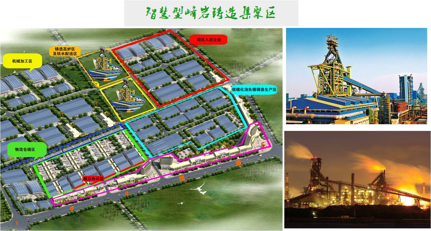 By 2017, the production capacity of Feng Yan casting agglomeration will reach 600,000 tons. Meanwhile, a cohort of related equipment manufacturing enterprises and auxiliary services will settle in the industrial park and maximize resource integration and sharing. A complete industrial chain will be formed: molten-- iron-casting--machinofacture--whole set. Our goal is to become the largest casting and equipment manufacturing base in China within 3 to 5 years. We target an annual sales revenue of 10 billion CNY (US$ 1.6 billion).