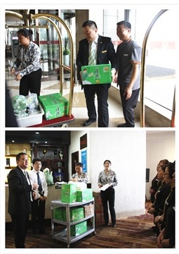 7月22日上午,酒店總經(jīng)理王濤、人事行政部經(jīng)理趙曉慧為酒店員工送去陣陣“清涼”、送上一份關(guān)愛,送去親切的問候,將防暑藥品、涼茶、冰糖等送到奮戰(zhàn)在一線的員工手中,尤其對外圍安保、PA保潔、客房服務(wù)員、工程維修、廚師等崗位忠于職守的精神表示感謝,并叮囑大家天氣炎熱,要注意防暑降溫,勞逸結(jié)合,確保身體健康。