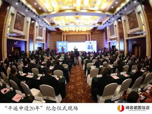 2017年12月3日上午九時,《平遙古城申遺成功二十周年紀念儀式暨保護與傳承論壇》在平遙峰巖建國飯店合慶廳莊重舉行。聯(lián)合國教科文組織亞太地區(qū)世界遺產(chǎn)培訓(xùn)與研究中心副主任西蒙尼?里卡、國家文物局文物保護與考古司世界遺產(chǎn)處副處長邵軍、山西省委、省政府領(lǐng)導(dǎo)、晉中市四大班子領(lǐng)導(dǎo)、1987年以來歷屆縣委縣政府主要領(lǐng)導(dǎo)及分管領(lǐng)導(dǎo)、來自麗江、蘇州園林、五臺山、云岡石窟等文化遺產(chǎn)地代表隆重會集,共計280余人應(yīng)邀出席了紀念儀式。此次活動有50余位新華網(wǎng)、澎湃網(wǎng)等國家省市媒體記者參與現(xiàn)場報道。