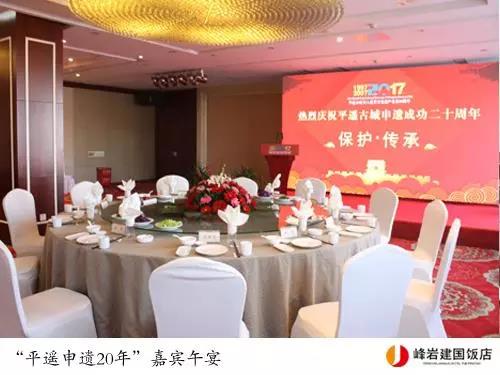 《紀念儀式暨保護與傳承論壇》后,平遙縣政府在峰巖建國飯店峰巖廳為參會嘉賓準備了招待午宴,午宴菜品酒店精心搭配了平遙特色菜品,參會賓客體味到了當?shù)匚幕兔朗场?/span>